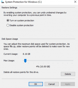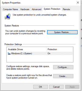 Turn system protection is on.