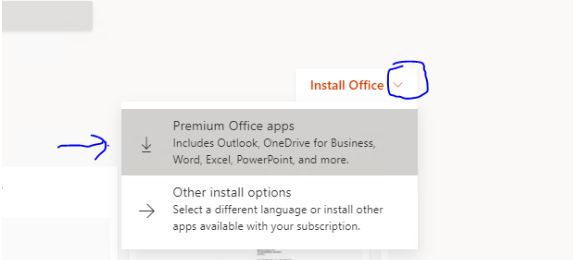 - Click the down arrow beside Install Office and chose Premium Office Apps: